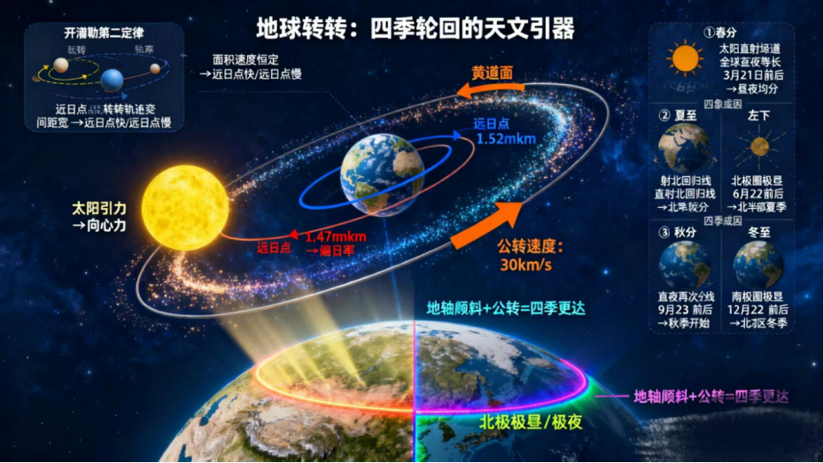 地球时刻都在进行两种运动:围绕地轴的自转和围绕太阳的公转。自转周期约24小时,赤道处线速度高达465米/秒,远超高铁速度;公转速度更是达到29.78公里/秒,相当于每秒绕地球赤道近一圈。但我们却丝毫感觉不到这种高速运动,这背后藏着物理学的惯性原理。