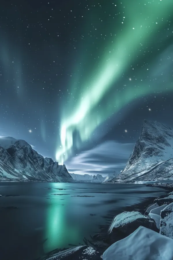 在地球的南北两极地区,夜晚常常会出现绚丽多彩的光带,这就是极光。极光的颜色多样,有绿色、红色、蓝色等,形态也千变万化,时而像彩带飘扬,时而像火焰跳动,是自然界最壮观的景象之一。