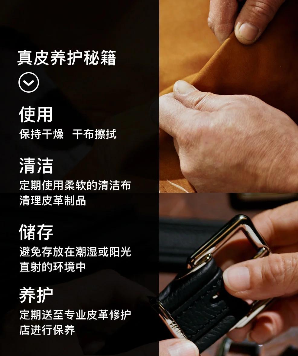 皮带保养要避免过度拉伸和暴晒。佩戴皮带时,不要用力拉扯,调整长度时要适度,避免皮带扣损伤皮带。皮带使用后,用软布擦拭干净,悬挂在通风处存放,不要折叠或重压。如果皮带出现轻微磨损,可用专用皮革修复剂涂抹,能有效修复磨损痕迹。