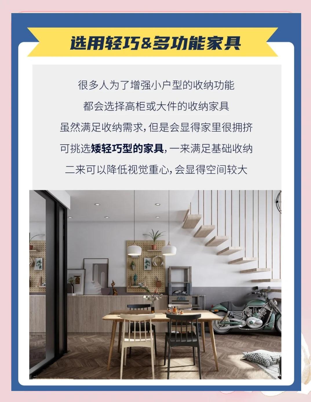家具选择要注重简约轻便,避免使用过大过重的家具。可选择多功能家具,比如沙发床、储物 ottoman 等,既能满足日常使用需求,又能增加收纳空间。家具摆放要留有足够的通道,避免堵塞空间,让行走更顺畅。此外,选择浅色系家具,浅色系具有视觉扩容效果,能让空间显得更明亮宽敞。