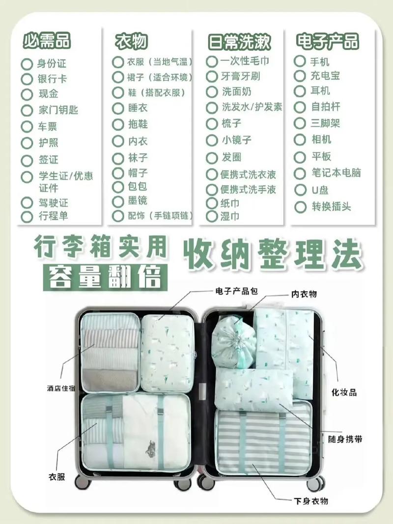 旅行时,打包行李是一件让人头疼的事情,要么东西装不下,要么打包好的行李杂乱无章,取用物品非常不方便。其实,只要掌握一些旅行收纳小技巧,就能轻松打包行李,合理利用行李箱空间,让出行更便捷。