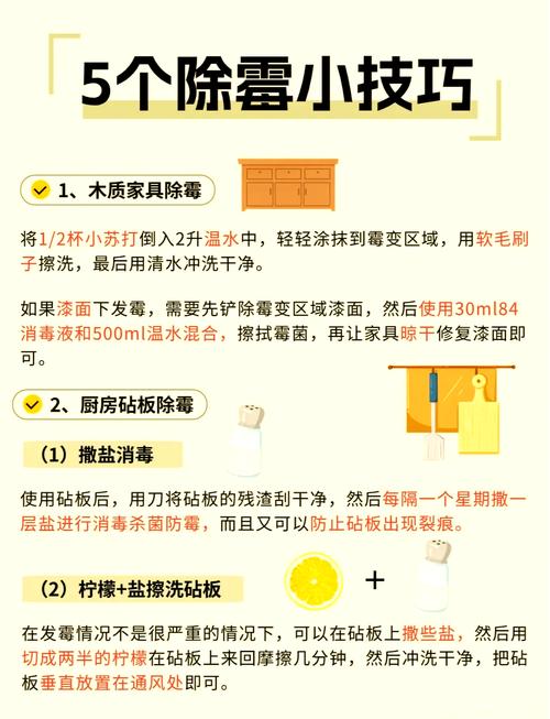 墙面地面防霉需做好防护与修复。瓷砖缝隙是霉菌重灾区,可填入美缝剂,防水防潮且不易发霉,还便于清洁。若墙面已出现霉斑,将白醋与小苏打调成糊状,涂抹在霉斑处静置10分钟,用刷子刷净后清水擦干,白醋和小苏打协同杀菌,且不损伤墙面。木质浴室柜表面涂抹防水漆,防止受潮变形,柜内放置干燥剂,吸收残留湿气。