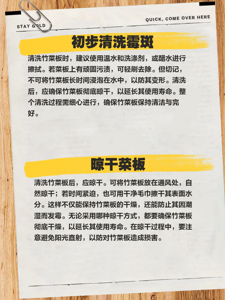 木质砧板吸水性强,清洁时需避免长时间浸泡。使用后立即用温水冲洗,用硬毛刷去除表面食物残渣,再用少量中性洗洁精擦拭,去除残留油脂,冲洗干净后用干抹布擦干,竖放在通风处晾干,防止潮湿发霉。每周进行一次深度消毒,将食盐撒在砧板表面,用柠檬片反复擦拭,食盐杀菌抑菌,柠檬酸能去除异味、软化污垢,擦拭后静置10分钟,冲洗干净即可,还能留下淡淡的柠檬清香。