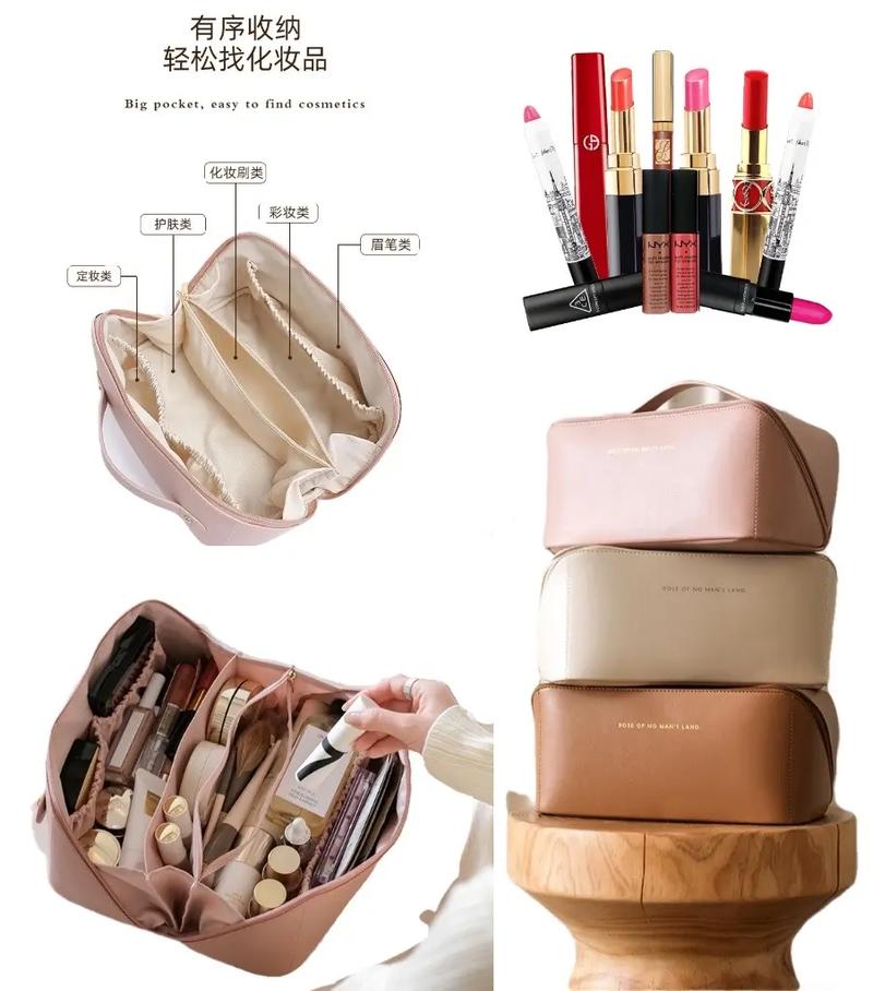 巧用空间,提升收纳容量。化妆包内侧口袋用来放置常用物品如口红、粉饼、棉签,取用方便,无需翻找;底部放置厚重物品如眼影盘、腮红盘,保持化妆包平衡,避免倾倒。利用化妆包缝隙空间,将化妆棉、卸妆巾卷成筒状,塞入缝隙,填充空隙,同时节省空间。化妆品按使用频率摆放,常用物品放在易取处,不常用物品放在化妆包底部或内侧。