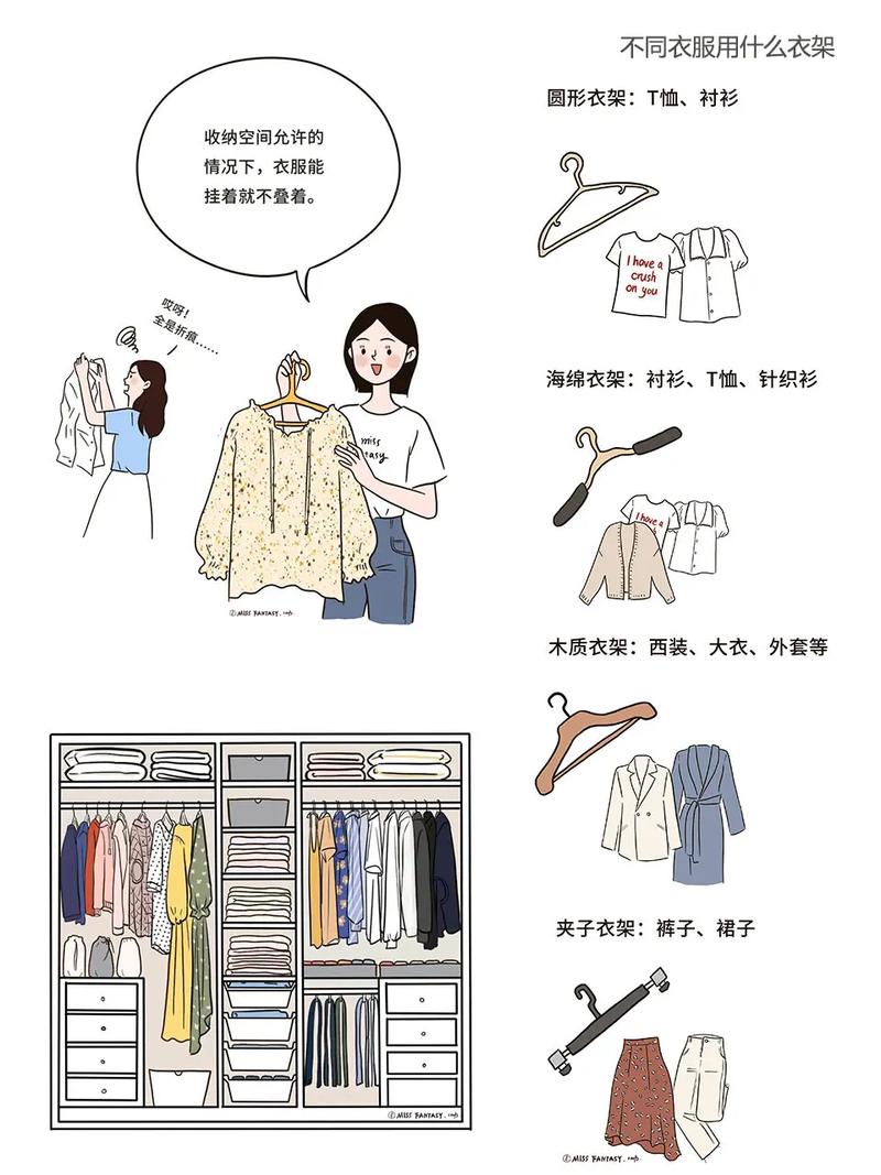 根据衣物材质和款式,选择合适的收纳方式。厚重的衣物如羽绒服、毛衣、大衣,适合折叠收纳,避免悬挂导致变形。折叠羽绒服时,先将袖子对折,再从底部向上卷成球状,放入收纳袋中,节省空间且不易变形;毛衣折叠时,可采用“卷叠法”,从领口处向下卷,减少褶皱,避免拉伸领口。轻薄的衣物如衬衫、T恤、连衣裙,适合悬挂收纳,用宽肩衣架悬挂,避免衣架过细导致肩部变形,衬衫收纳时可将袖子交叉叠在胸前,防止褶皱。