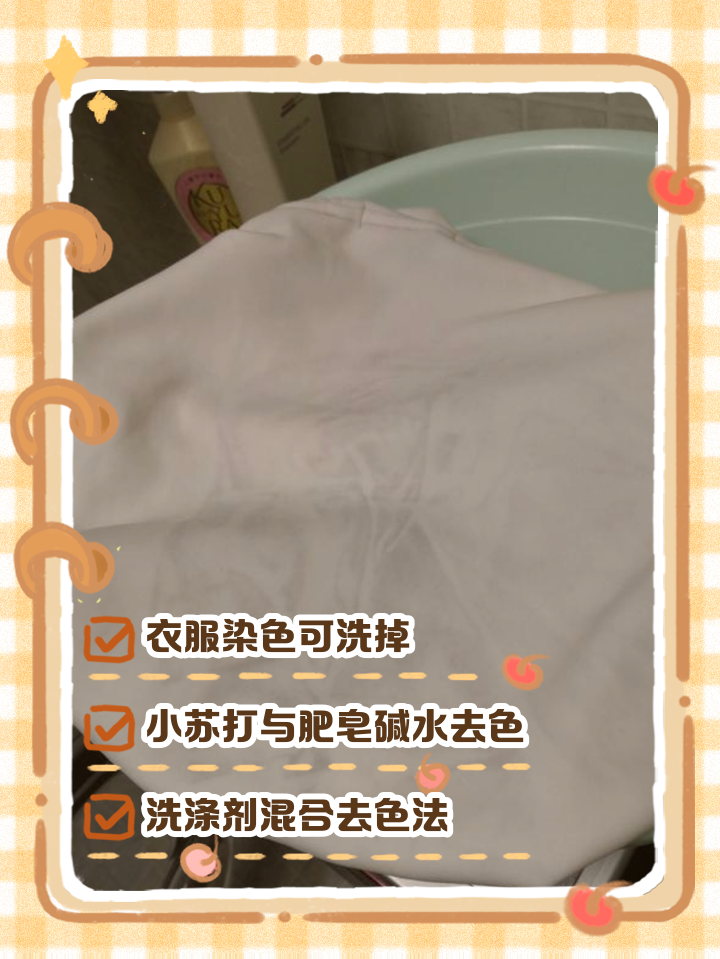 最常用、最有效的衣物染色补救方法,是“白醋+小苏打去染法”,适合棉质、麻质、化纤等常见面料的衣物,尤其是浅色衣物被深色衣物染色的情况,补救效果极佳,操作简单,安全环保,不会损伤衣物面料。具体操作很简单:将染色的衣物放入盆中,加入适量的温水,温水的温度控制在30-40℃左右,不要用热水,热水会让染色更牢固,难以去除,然后倒入适量的白醋和小苏打,白醋和小苏打的比例为2:1,搅拌均匀,让衣物完全浸泡在溶液中,浸泡30-60分钟,浸泡过程中,可轻轻揉搓衣物的染色部位,让溶液充分作用于染色,帮助去除染色。