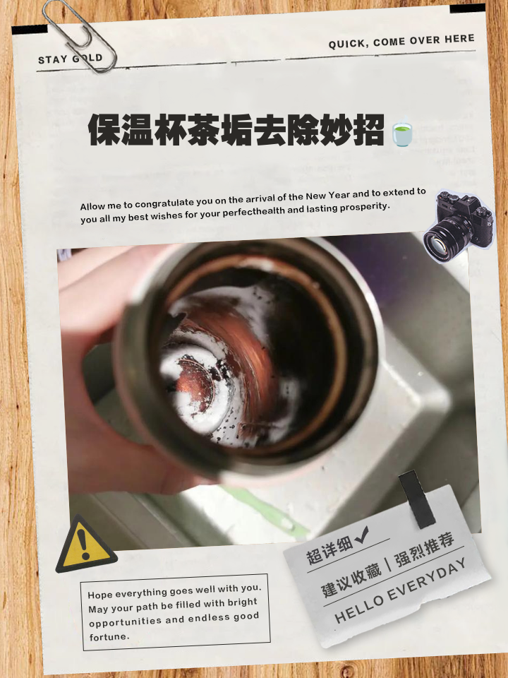 保温杯是居家出行必备的饮品容器,能长效保温、便携实用,不管是装热水、温水,还是装花茶、咖啡,都十分方便,但长期使用后,保温杯内壁会积累水垢、茶渍、咖啡渍,还会散发异味,不仅影响饮品口感,还会滋生细菌,危害身体健康,而且不注重保养,会导致保温杯保温效果下降、内壁破损、漏水等问题,缩短使用寿命。很多人清洁保温杯时,只清洁杯口和外壁,忽略内壁的水垢和污渍,导致异味和细菌滋生,十分不卫生。其实,只要掌握一些简单实用的清洁与保养小技巧,就能轻松去除保温杯内壁的水垢、茶渍和异味,杀菌消毒,保护保温杯,让其保温效果持久,安全又耐用,操作简单,适合所有类型的保温杯。