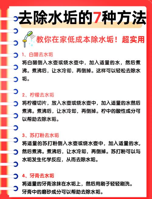 去除水龙头水垢,水龙头长期使用,出水口和表面会产生水垢,导致水流变小、出水不畅,还会影响美观,去除水龙头水垢,方法简单快捷。方法一:白醋+保鲜膜去垢法,准备适量白醋,用棉签蘸取少量白醋,轻轻擦拭水龙头表面和出水口的水垢,擦拭1-2分钟,让白醋软化水垢,然后用保鲜膜,将水龙头包裹起来,尤其是水垢较多的部位,包裹严密,静置15-20分钟,让白醋充分作用,软化顽固水垢,静置完成后,取下保鲜膜,用软布轻轻擦拭,水垢就能轻松去除,然后用清水冲洗干净,水龙头就能恢复光亮;方法二:牙膏去垢法,牙膏具有很强的去污、去垢能力,适合去除水龙头表面的轻微水垢,在水龙头表面,涂抹少量牙膏,用软布轻轻擦拭,擦拭时,要顺着水龙头的纹理,避免损伤表面的光泽,擦拭1-2分钟后,水垢会慢慢淡化,然后用清水冲洗干净,再用干布擦干,水龙头就能恢复光亮,还能去除表面的污渍。