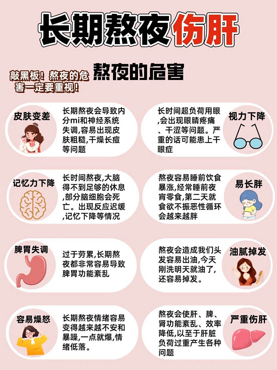 随着生活节奏的加快,熬夜已经成为很多人的常态,有人因为工作加班熬夜,有人因为刷手机、玩游戏熬夜,有人因为失眠被迫熬夜。很多人都觉得,熬夜后只要第二天补个觉,就不会有什么问题,甚至觉得“年轻就是资本,熬熬夜没关系”,其实这种想法是非常错误的。长期熬夜的危害远超我们的想象,不仅会影响精神状态,还会损伤身体各个器官,引发多种疾病,而那些所谓的“熬夜补救方法”,很多都是无效的,甚至会加重身体负担。今天就来科普长期熬夜的危害,以及正确的补救方法,帮大家重视熬夜的危害,养成规律作息。