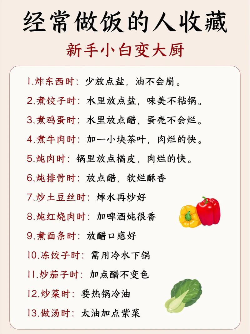 厨房是家庭的美食阵地,但对于很多人来说,做饭不仅耗时费力,还常常会遇到各种难题:蔬菜清洗不干净、肉类解冻太慢、炒菜容易糊锅、调料不好收纳……其实,这些看似棘手的烹饪难题,都有简单实用的解决技巧。掌握这些厨房小技巧,就能轻松解决烹饪中的各种麻烦,提升做饭效率,让你在厨房中得心应手,做出美味可口的饭菜,还能减少厨房的杂乱,让烹饪变得更轻松、更愉悦。