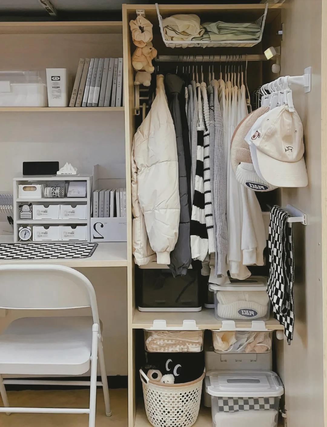 衣柜收纳是收纳整理的重点,很多人衣柜杂乱,是因为衣物摆放不当、分类不清晰。想要让衣柜变得整洁有序,首先要对衣物进行分类,按照季节、款式、用途分类,比如春季衣物、夏季衣物、冬季衣物分开,上衣、裤子、裙子分开,常用的衣物和不常用的衣物分开。分类完成后,采用“折叠+悬挂”的方式摆放,常用的上衣、裙子、外套等,可悬挂在衣柜中,使用防滑衣架,避免衣物滑落、变形;不常用的衣物、裤子等,可折叠整齐,放入衣柜抽屉或收纳盒中,折叠时要注意平整,节省空间。
