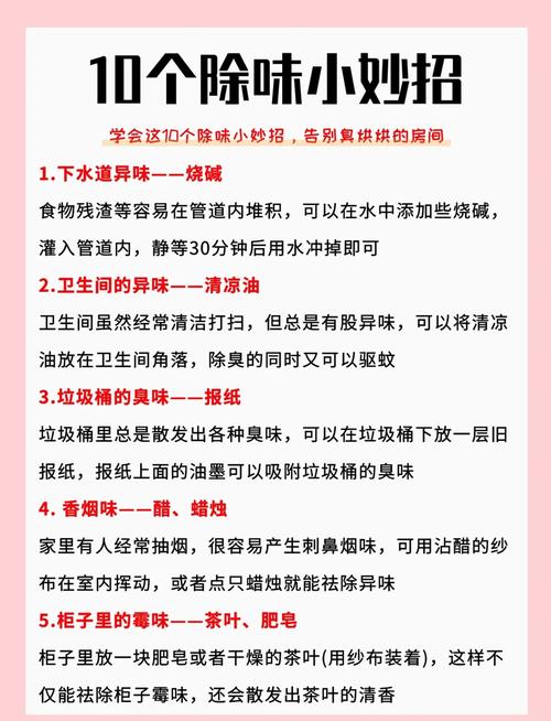 日常生活中,难免会遇到各种异味困扰:鞋子发霉有异味、冰箱有食物异味、衣柜有潮气异味、口腔有异味、宠物身上有异味……这些异味不仅影响心情,还会影响生活环境,甚至让人陷入尴尬境地。其实,去除异味不需要依赖昂贵的除味产品,利用家里常见的物品,掌握一些简单的小技巧,就能快速去除各种异味,守护清新舒适的生活环境,告别异味尴尬。