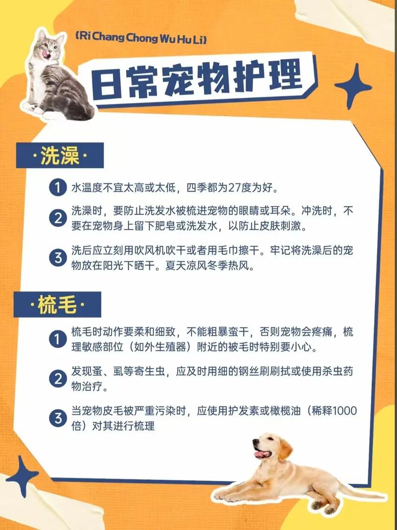 宠物洗澡时,要注意方法,选择宠物专用的沐浴露,不要使用人类的沐浴露,人类的沐浴露会刺激宠物的皮肤,导致皮肤过敏、瘙痒;洗澡时,水温要适中,控制在38-40℃左右,避免水温过高或过低,刺激宠物的皮肤;洗澡时,先将宠物的毛发打湿,然后涂抹适量的沐浴露,轻轻揉搓,尤其是宠物的腹部、四肢、尾部等容易脏的部位,揉搓干净后,用清水彻底冲洗干净,避免沐浴露残留,导致皮肤瘙痒。洗澡后,及时用干毛巾擦干宠物的毛发,然后用吹风机调至热风档,将宠物的毛发彻底吹干,避免毛发潮湿,导致宠物感冒、皮肤发霉。