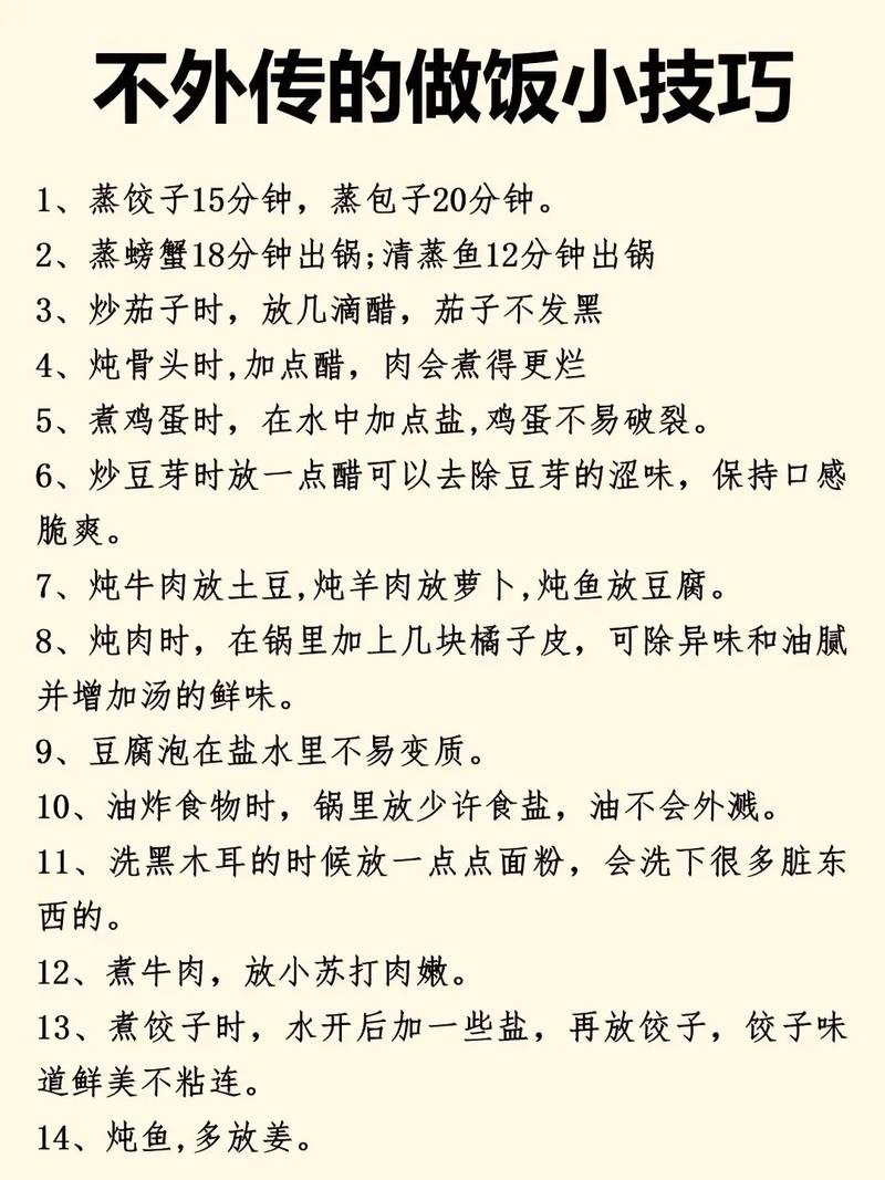 肉类烹饪不发柴、入味,是新手做饭的重点,很多新手炒肉、煮肉时,容易把肉煮得发柴、嚼不动,还不入味,其实,只要掌握正确的方法,就能轻松解决。小技巧:炒肉类食材时,火候要大,快速翻炒,不要炒太久,肉类变色后,再翻炒1-2分钟即可出锅,炒太久会导致肉类的水分流失,变得发柴;煮肉类食材时,不要用冷水下锅,要用沸水下锅,沸水能快速锁住肉类的水分,让肉质更鲜嫩,煮肉时,加入少量姜片和料酒,能去除肉类的腥味,煮至肉类八成熟时,加入调料入味,再煮10-15分钟,既能让肉类入味,又不会发柴。