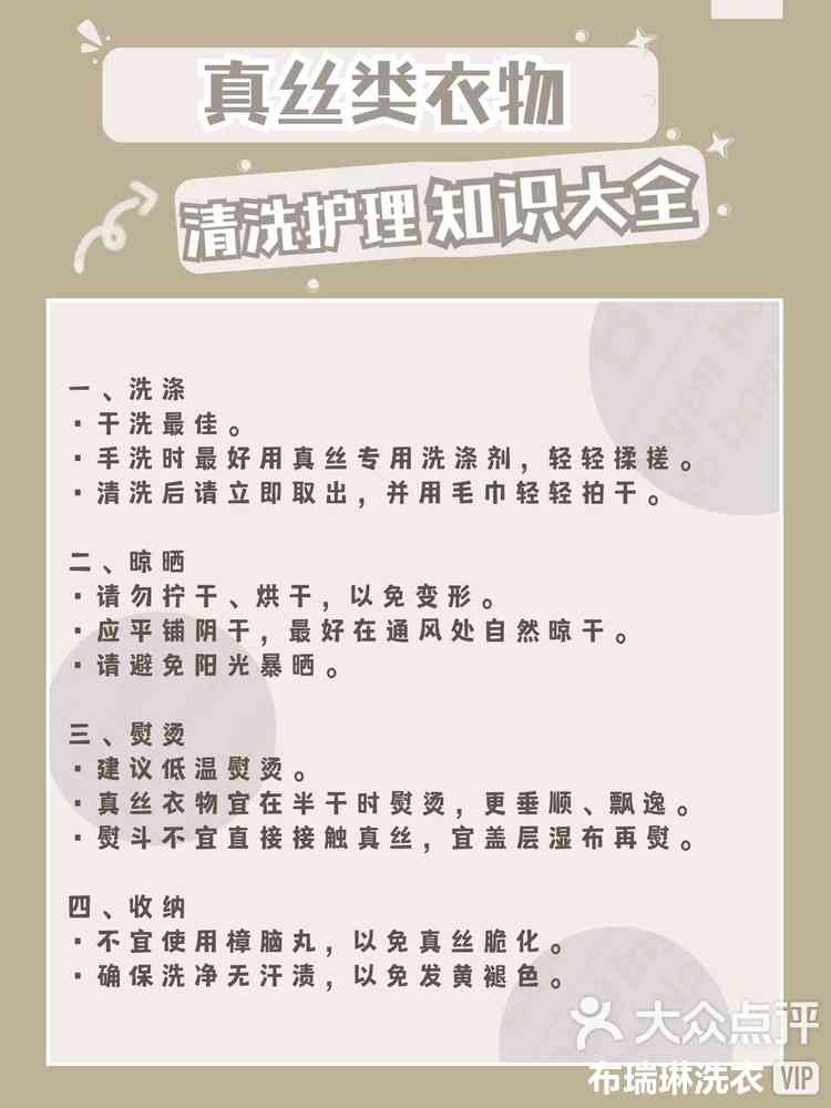 丝绸面料衣物护理要“温和清洁、避光晾干”。丝绸面料柔软光滑,不耐碱、不耐摩擦,需使用丝绸专用洗涤剂,用冷水轻柔洗涤,避免使用洗衣机搅拌模式。洗完后用毛巾轻轻按压吸干水分,平铺在通风阴凉处晾干,避免暴晒和高温烘干,否则会导致面料发黄、变硬。丝绸衣物存放时,需放入防尘袋,避免与粗糙衣物摩擦。